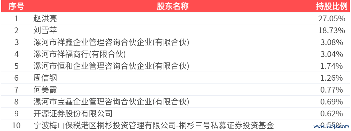 公司股东户数为5775户配资炒股的,前十大股东持股数量为7302.76万股,占总股本比例为57.54%,前十大股东持股情况如下: