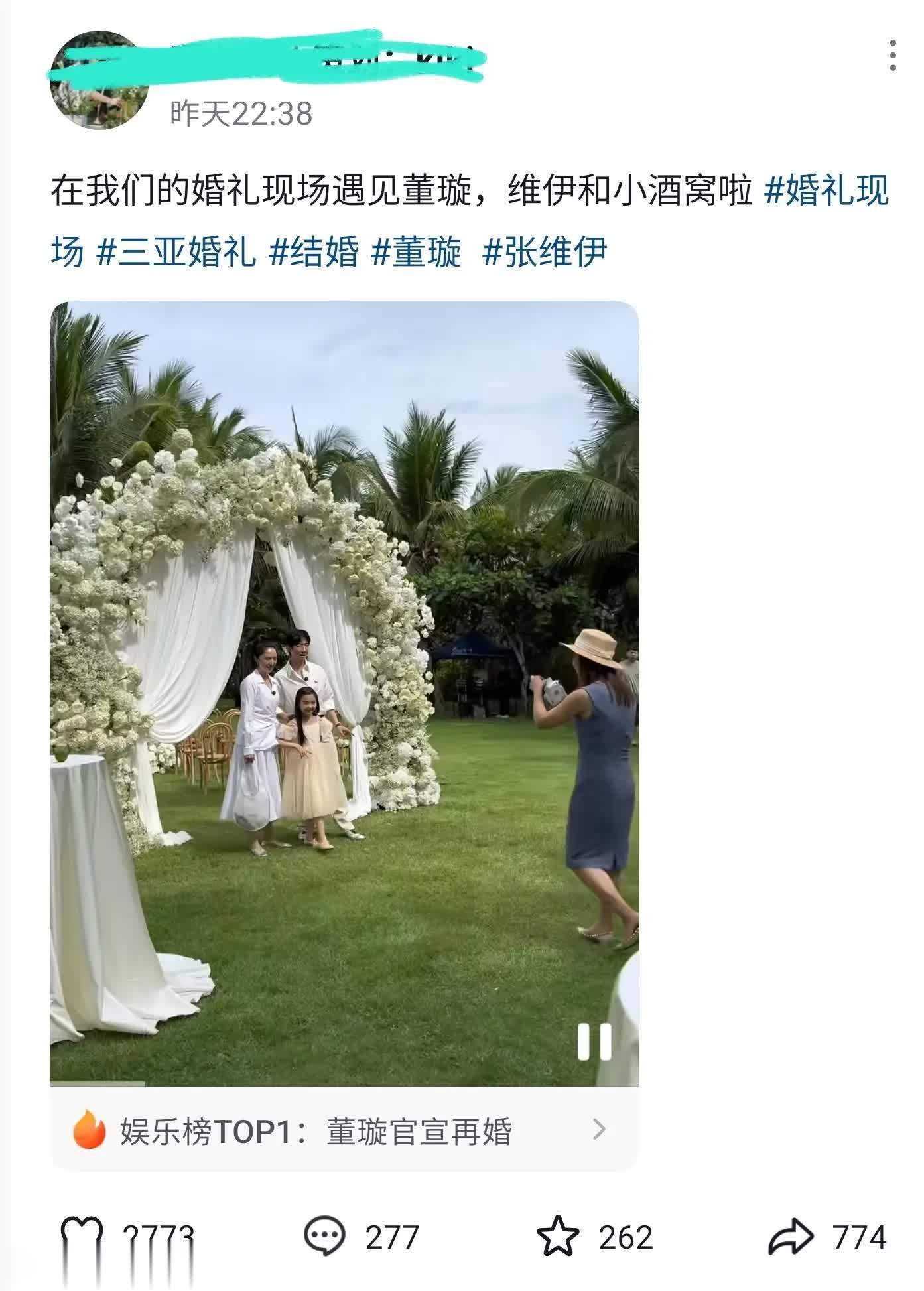 据悉,是一位自称是婚礼策划的网友在网上分享了一段在他们布置的婚礼现场遇到董璇、张维伊的画面。