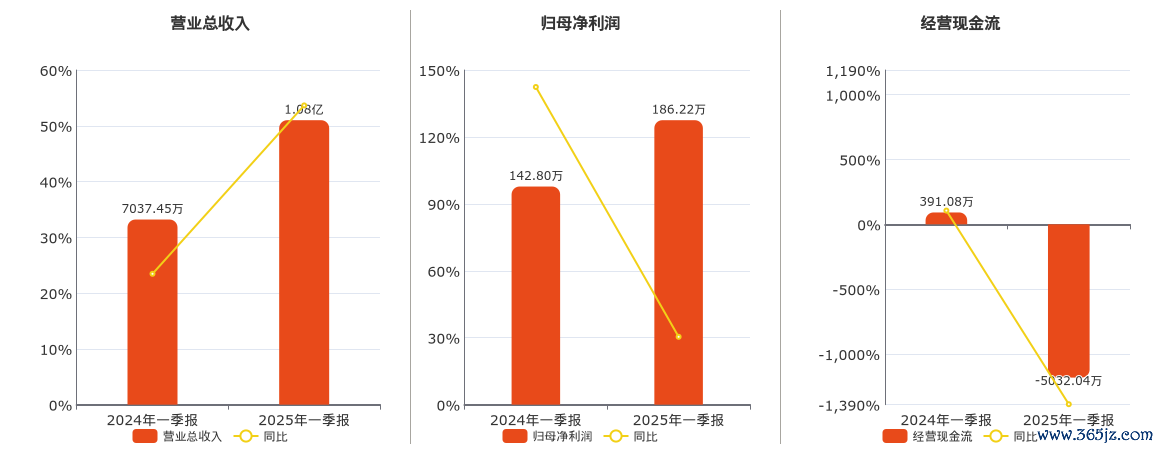 公司营业总收入为1.08亿元,在已披露的同业公司中排名第114。归母净利润为186.22万元,在已披露的同业公司中排名第106。经营活动现金净流入为-5032.04万元,在已披露的同业公司中排名第68,较去年同报告期经营活动现金净流入减少5423.12万元,同比较去年同期下降1386.70%。
