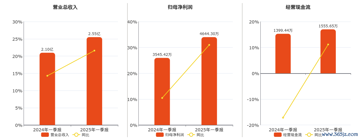 公司营业总收入为2.55亿元,在已披露的同业公司中排名第82。归母净利润为4644.30万元。经营活动现金净流入为1555.65万元,在已披露的同业公司中排名第82。